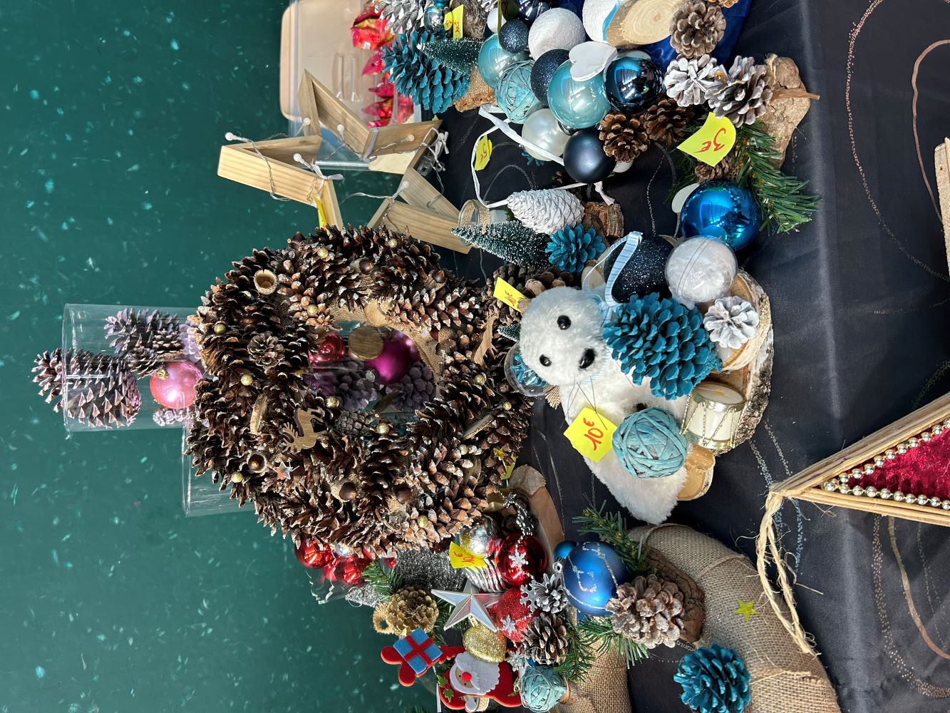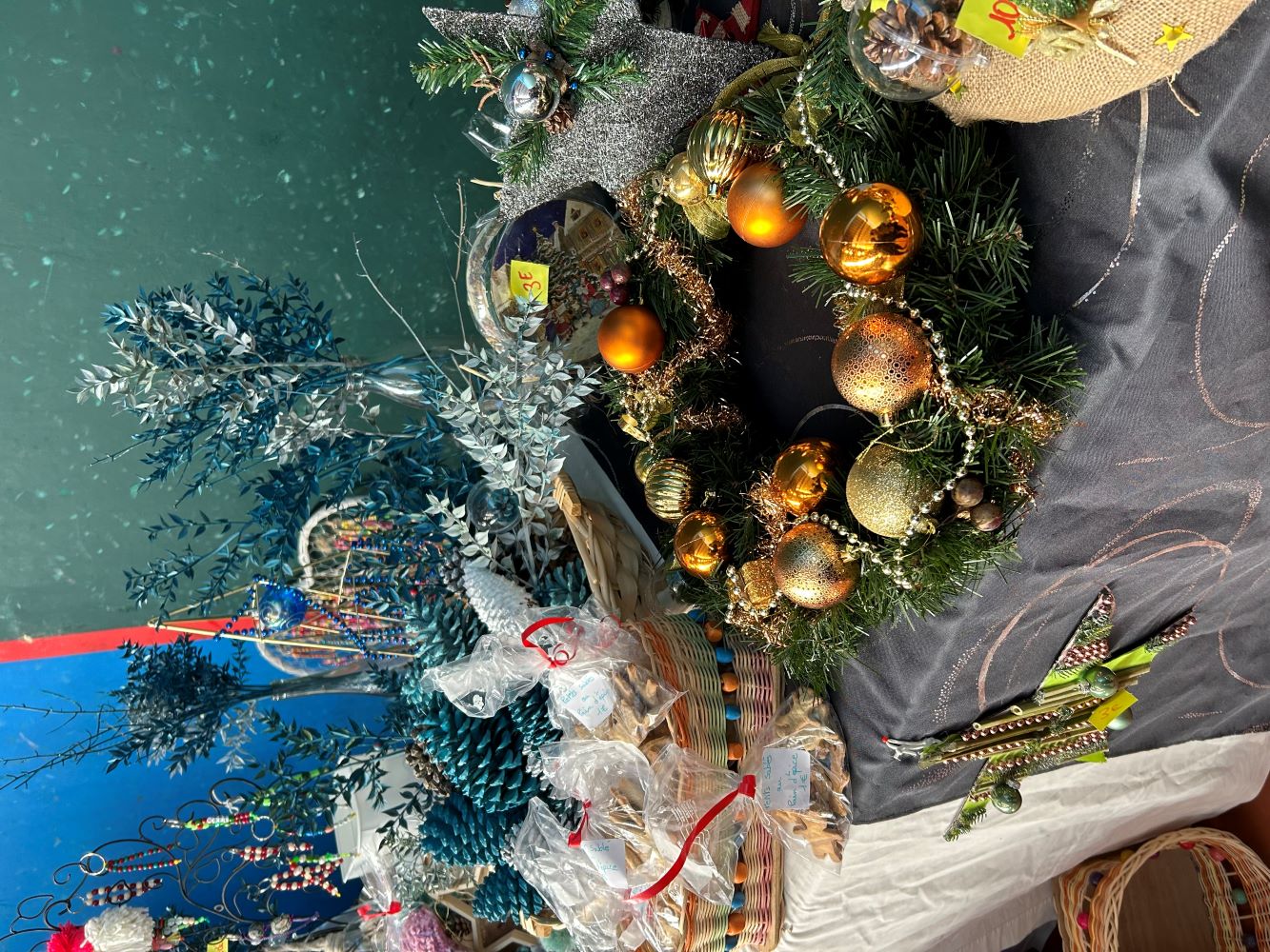 Le 17 décembre 2023, Virginie, Joanna, Véronique, Audrey, Laurent et Nadine l'éducatrice, ont installé leur stand dans la salle polyvalente du village, où se tenait le marché organisé par l'association des parents d'élèves de l'école. Ils étaient fiers de montrer leurs créations et de les vendre au profit de leur association. Ils ont aussi pu profiter de l'ambiance festive et conviviale du marché où ils ont rencontré d'autres exposants et des visiteurs curieux et admiratifs. Ils ont échangé des sourires, des compliments, des anecdotes, des conseils, des recettes, des vœux...