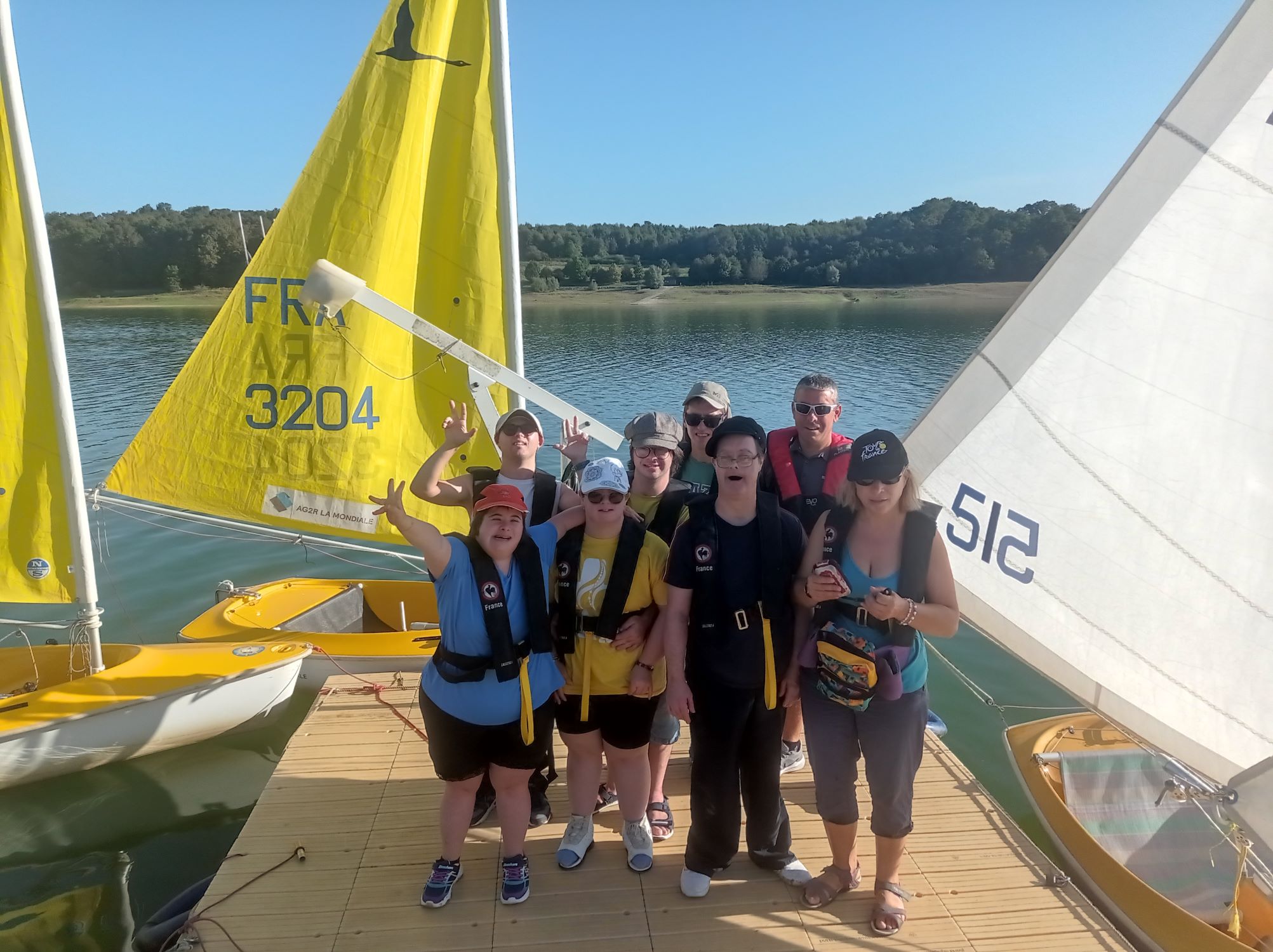 Nous sommes un groupe de six résidents: Dominique, Lisa, Virginie, Philippe, Grégory, Bixente, Florian et nous avons fait de la voile sur le lac de Gabas près de Lourenties, à la frontière entre les département des Pyrénées-Atlantiques et celui des Hautes Pyrénées, dans le cadre du sport adapté. Nous avons effectué cette sortie le jeudi 12 octobre 2023.Nous étions accompagnés de Christian, notre éducateur sportif.